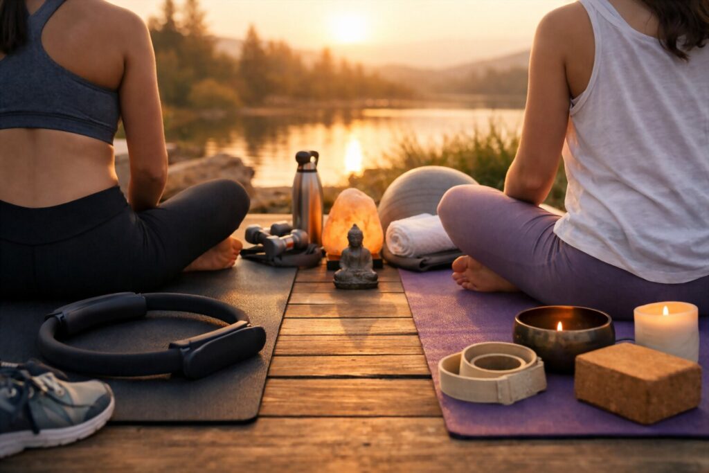 Yoga is often seen as the more minimal option. In many cases, all that’s needed is a mat and enough space to move comfortably. Some people choose to add props like blocks or straps, but these are optional and mainly used to support certain poses. Because of this simplicity, yoga is easy to practice almost anywhere—at home, in a park, or in a studio setting.